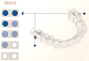 インビザライン・ティーンのトレーには、装着することでだんだん色が薄くなっていく青色のインジケーターがついています。