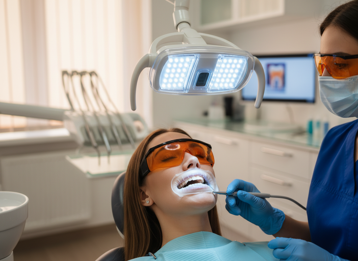 オフィス・ホワイトニングは、歯科医院で行われる専門的な治療で、高濃度の漂白剤を使用します。