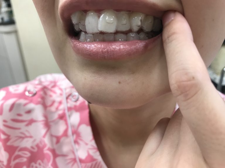 ③新しく交換した初日にカレーを食べて歯磨きをした後につけたアライナー