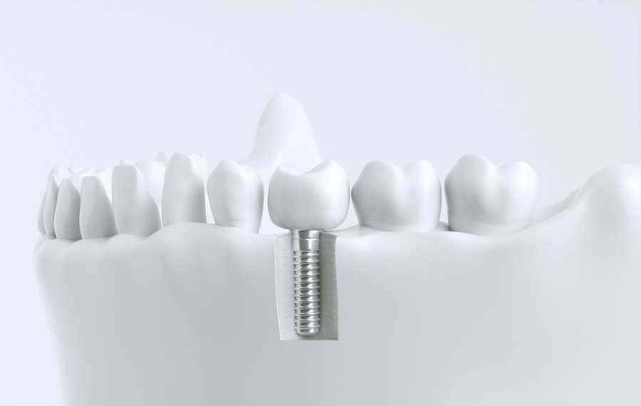 インプラント(人工歯根)を埋め込み、その上に人工歯冠を取り付ける方法